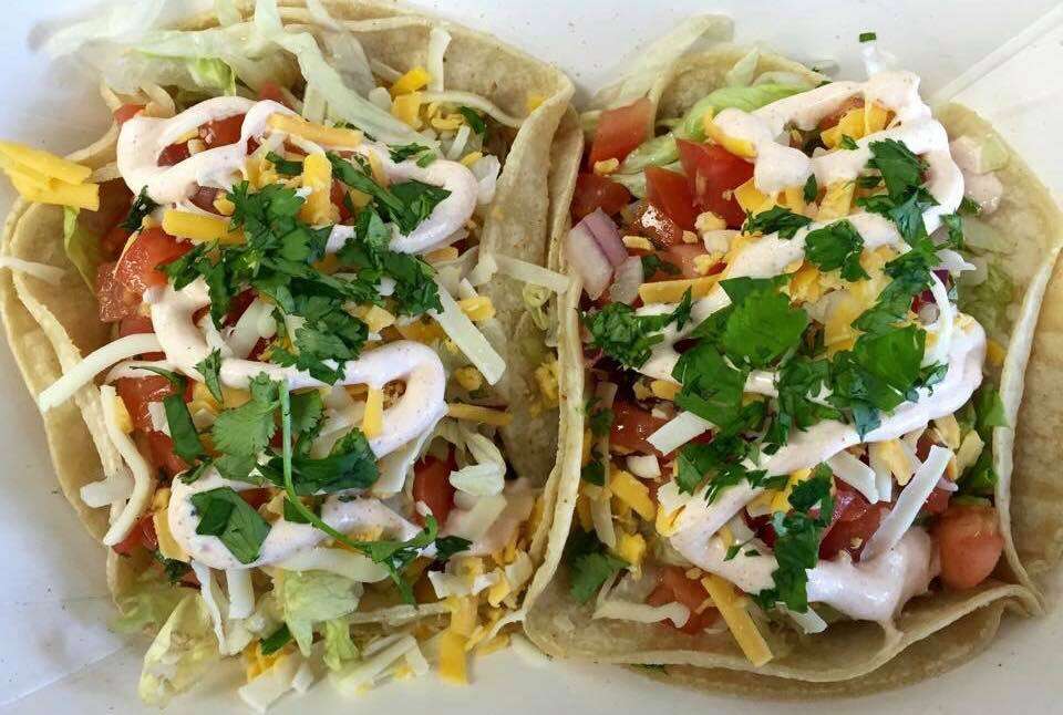 3 deep fried corn tortillas filled with shredded beef or chicken topped with lettuce sour cream guacamole and hot sauce and served with rice and beans. 3718 N Elston Ave Chicago IL. My only comment was the steak was spicy Hot to the point where I think my kids would not like it.